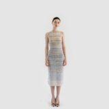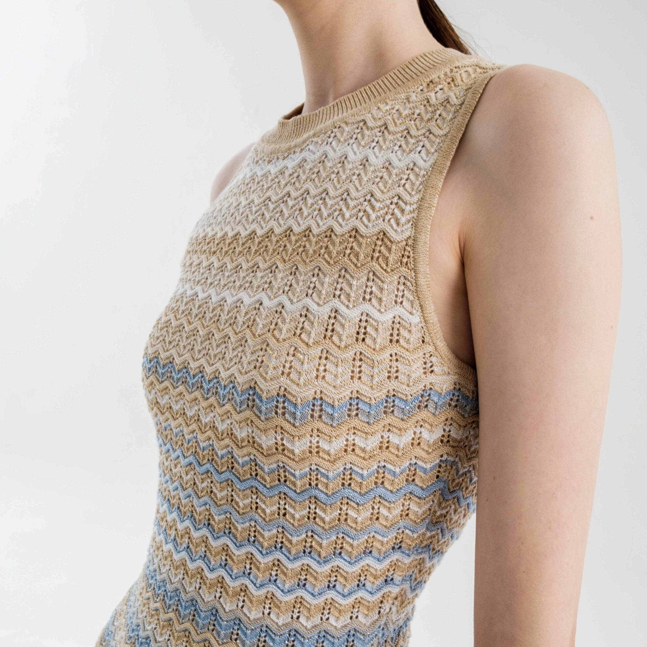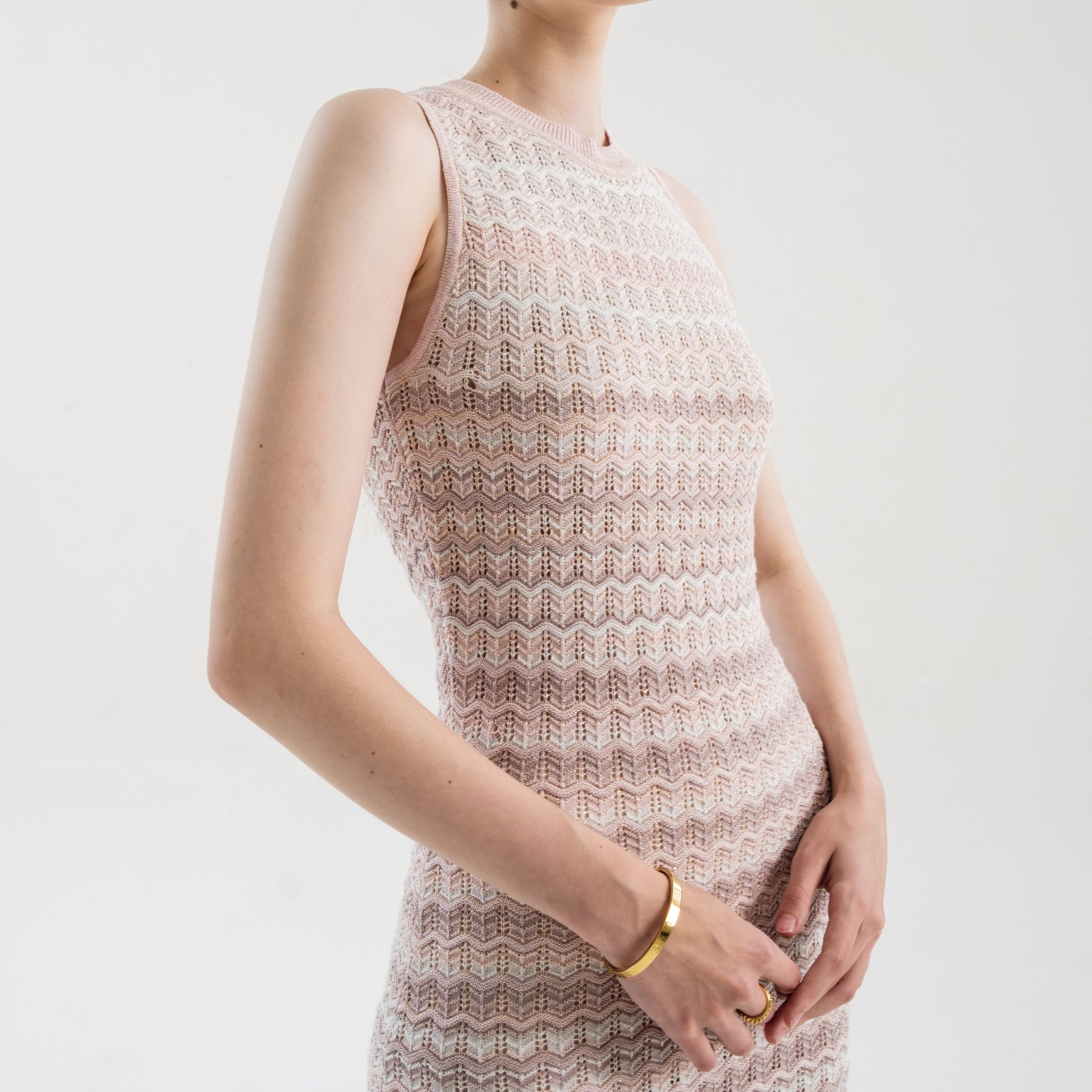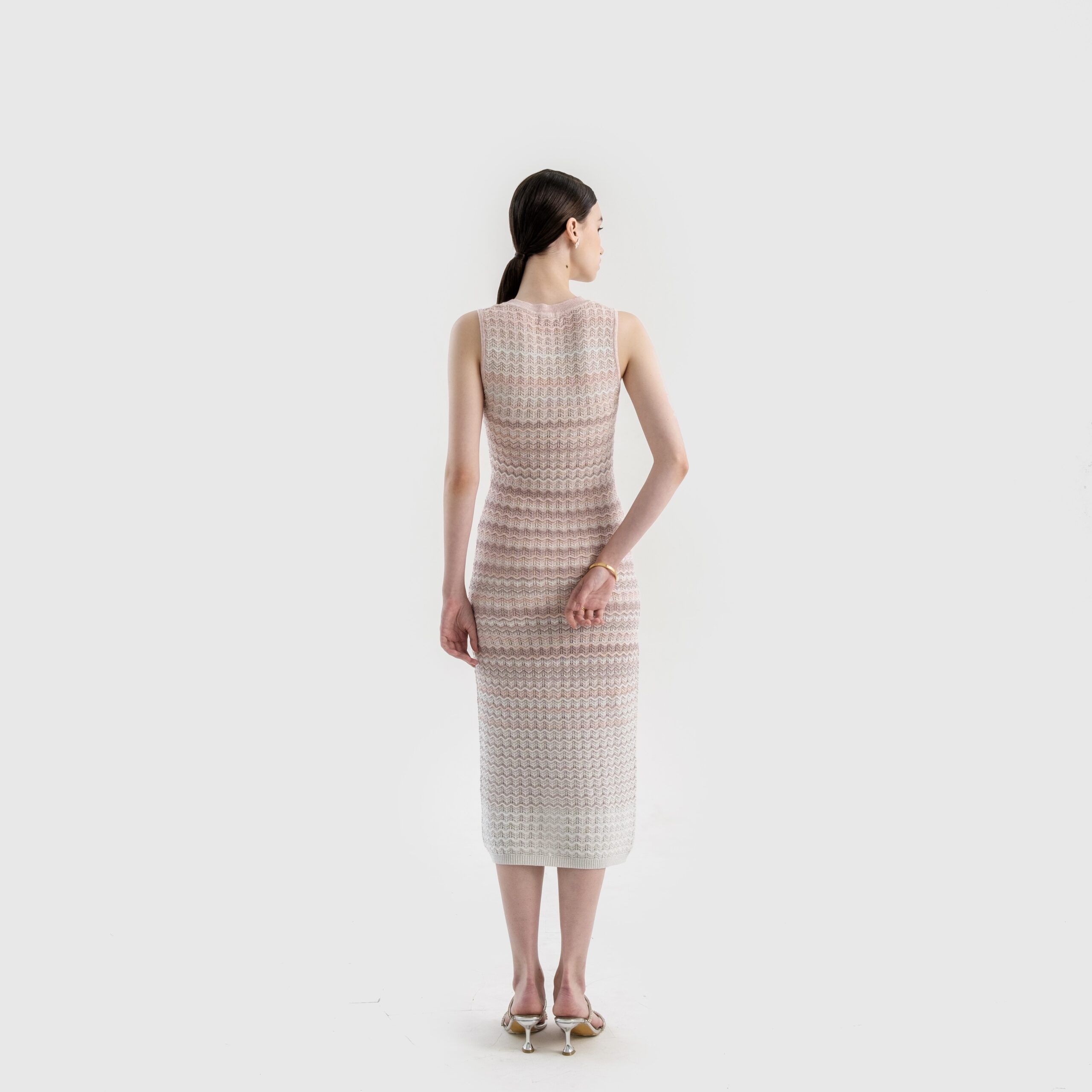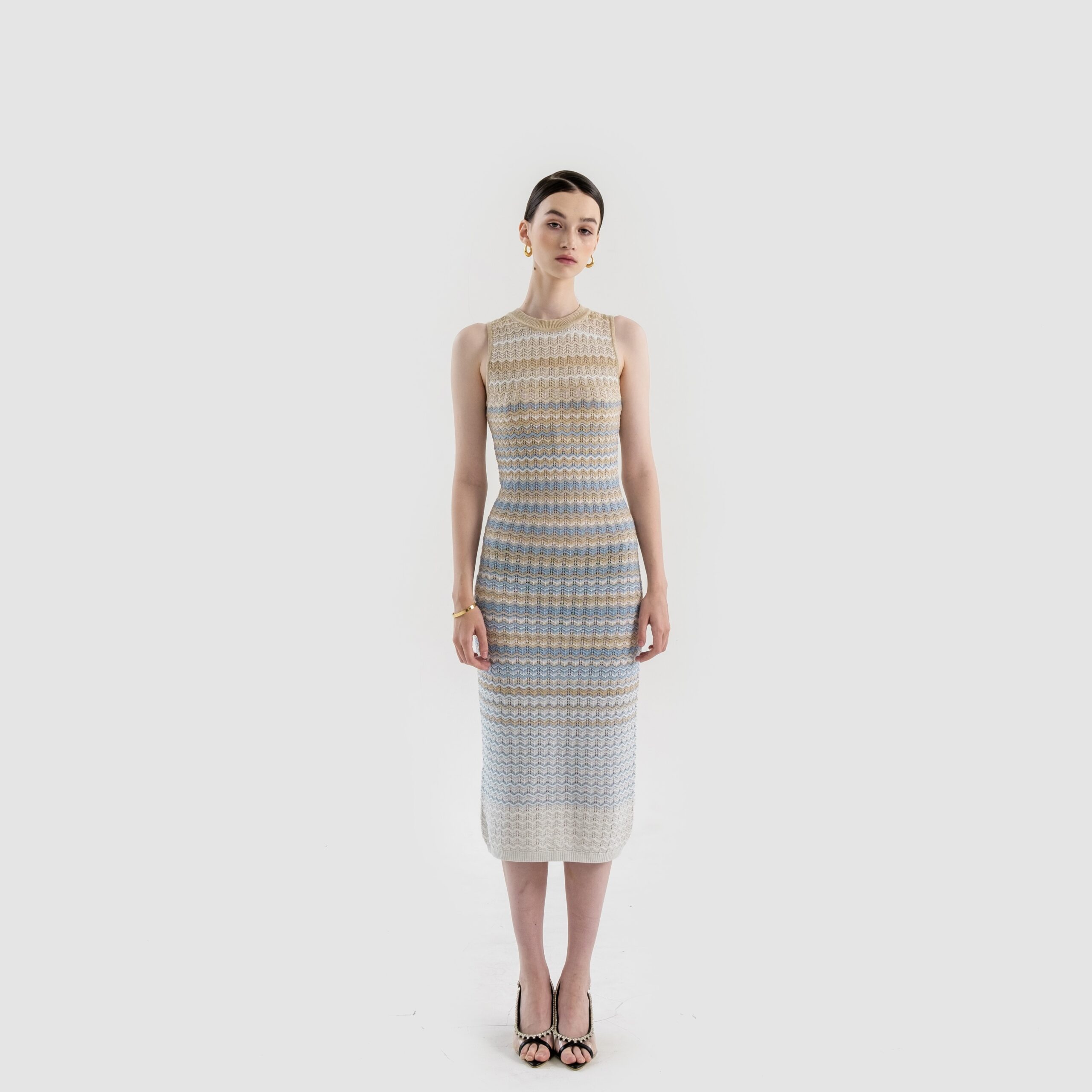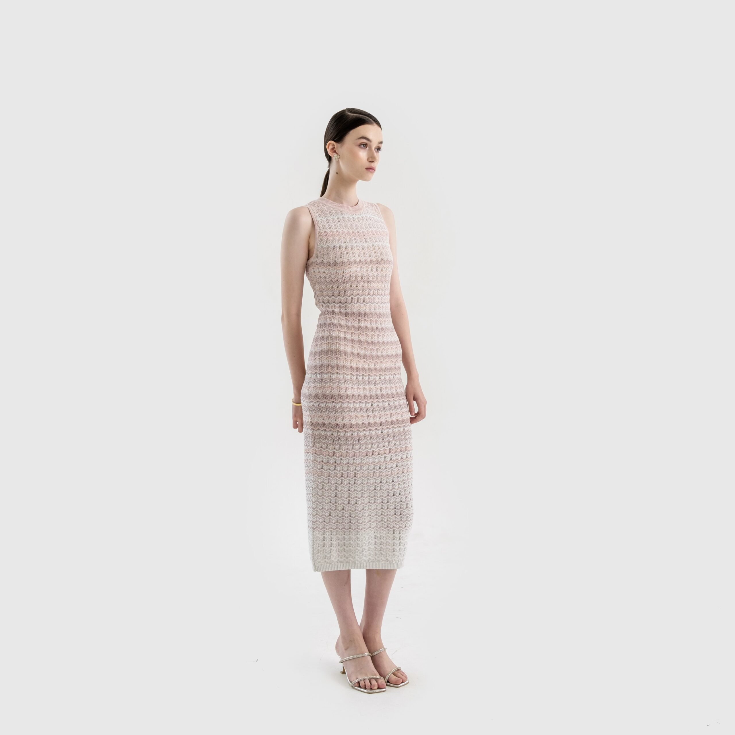 Midi sleeveless knit dress with round-neck design that hugs your body right.
