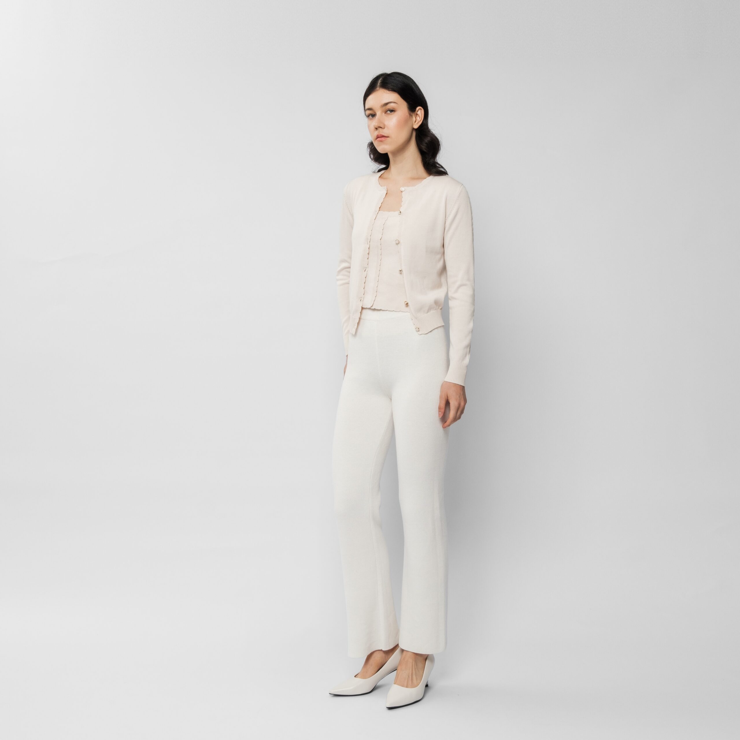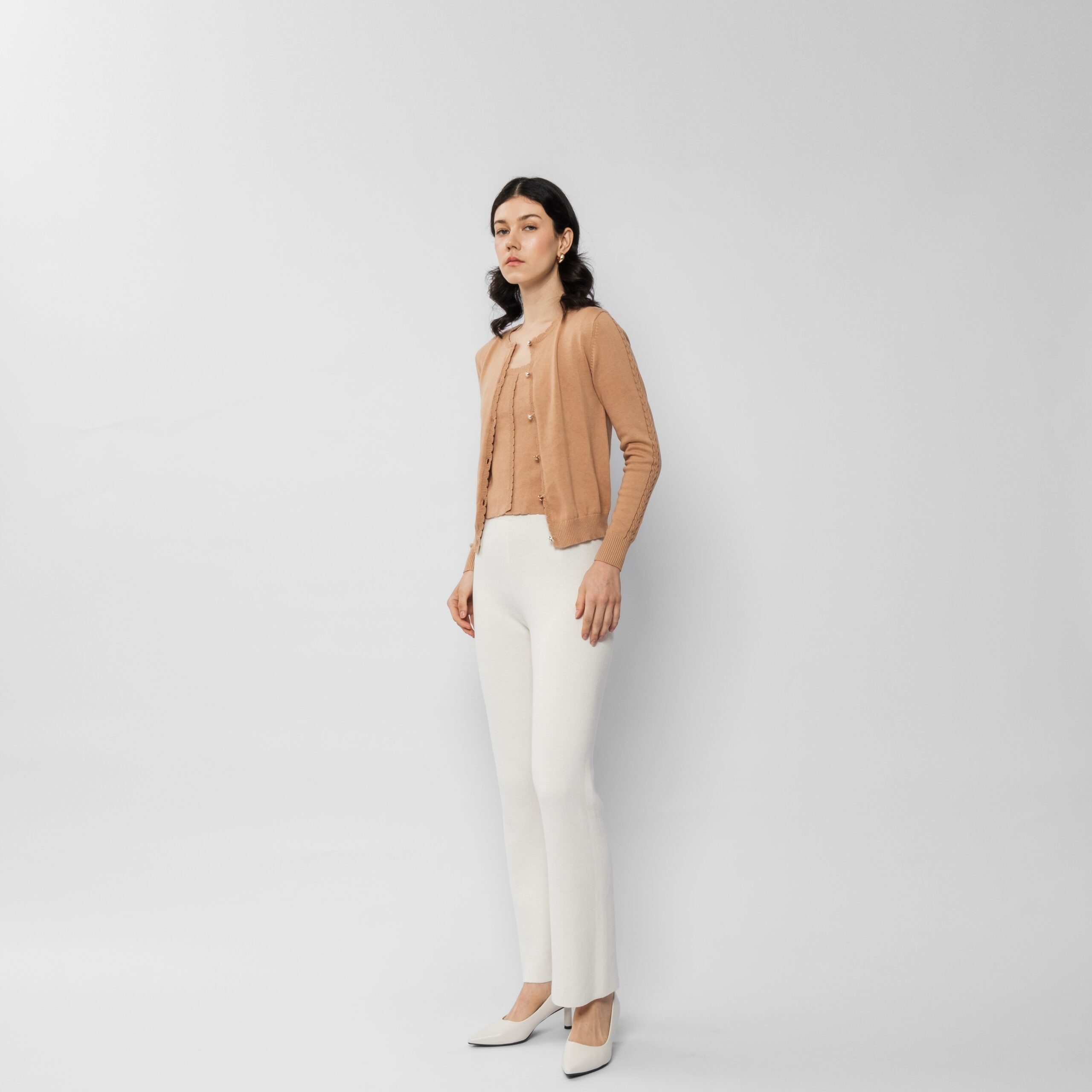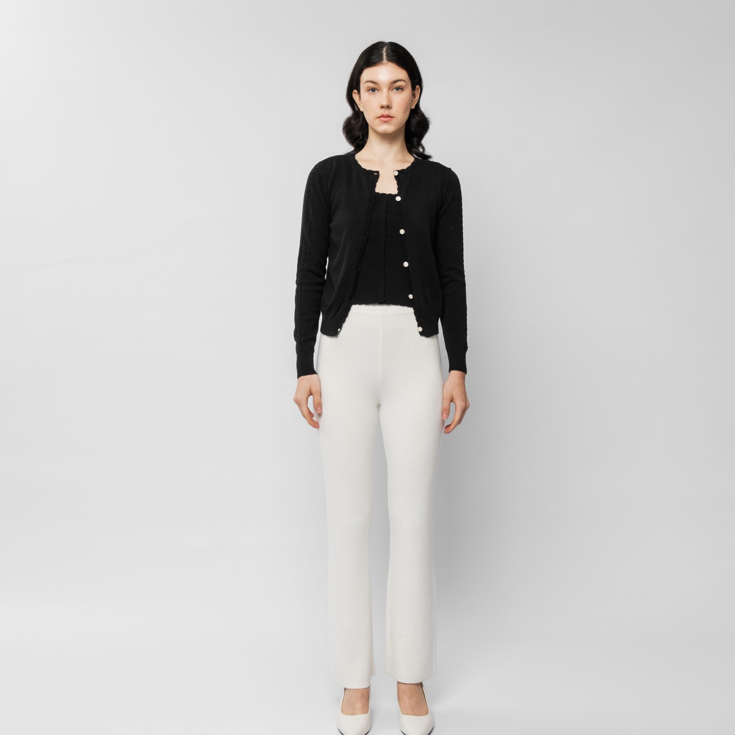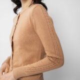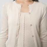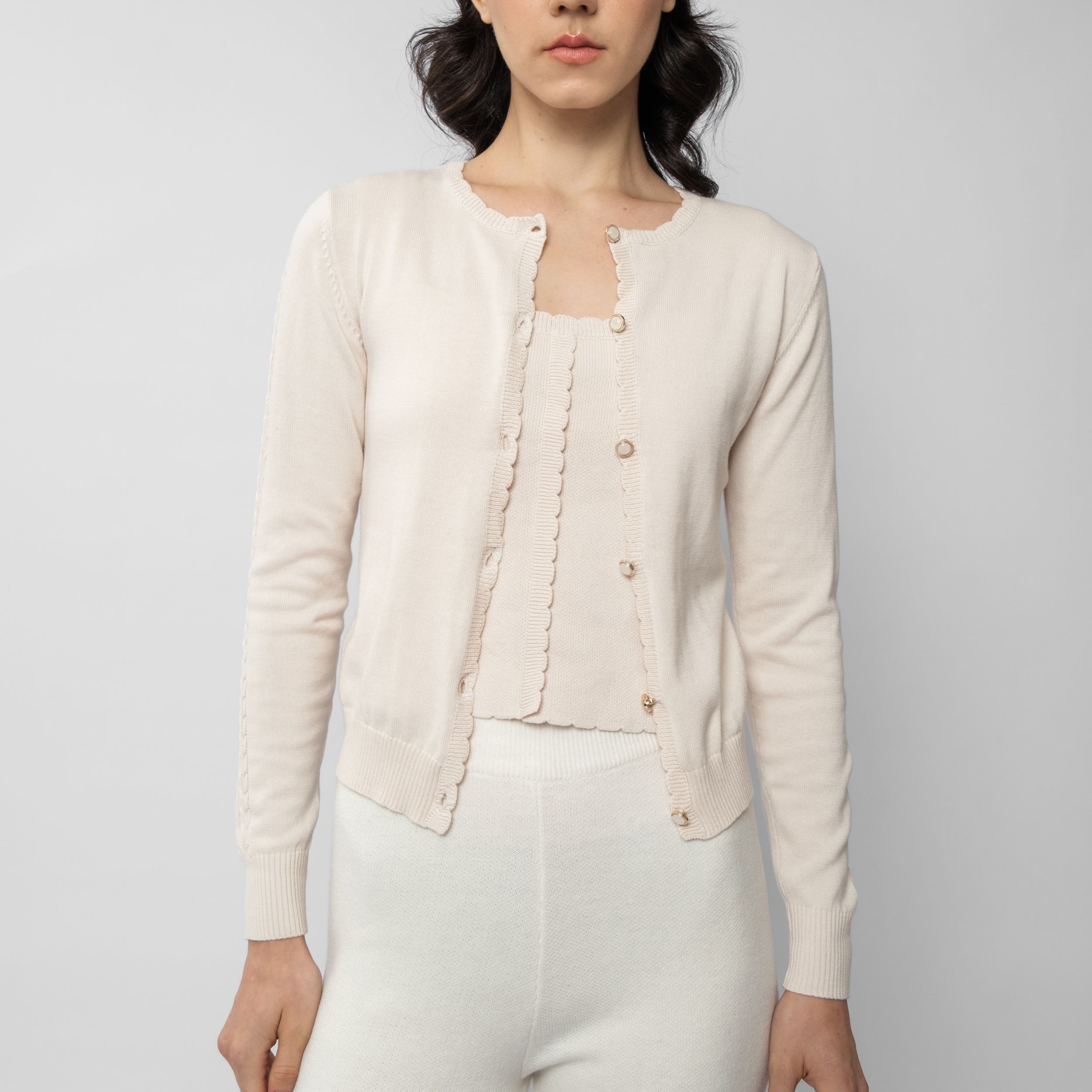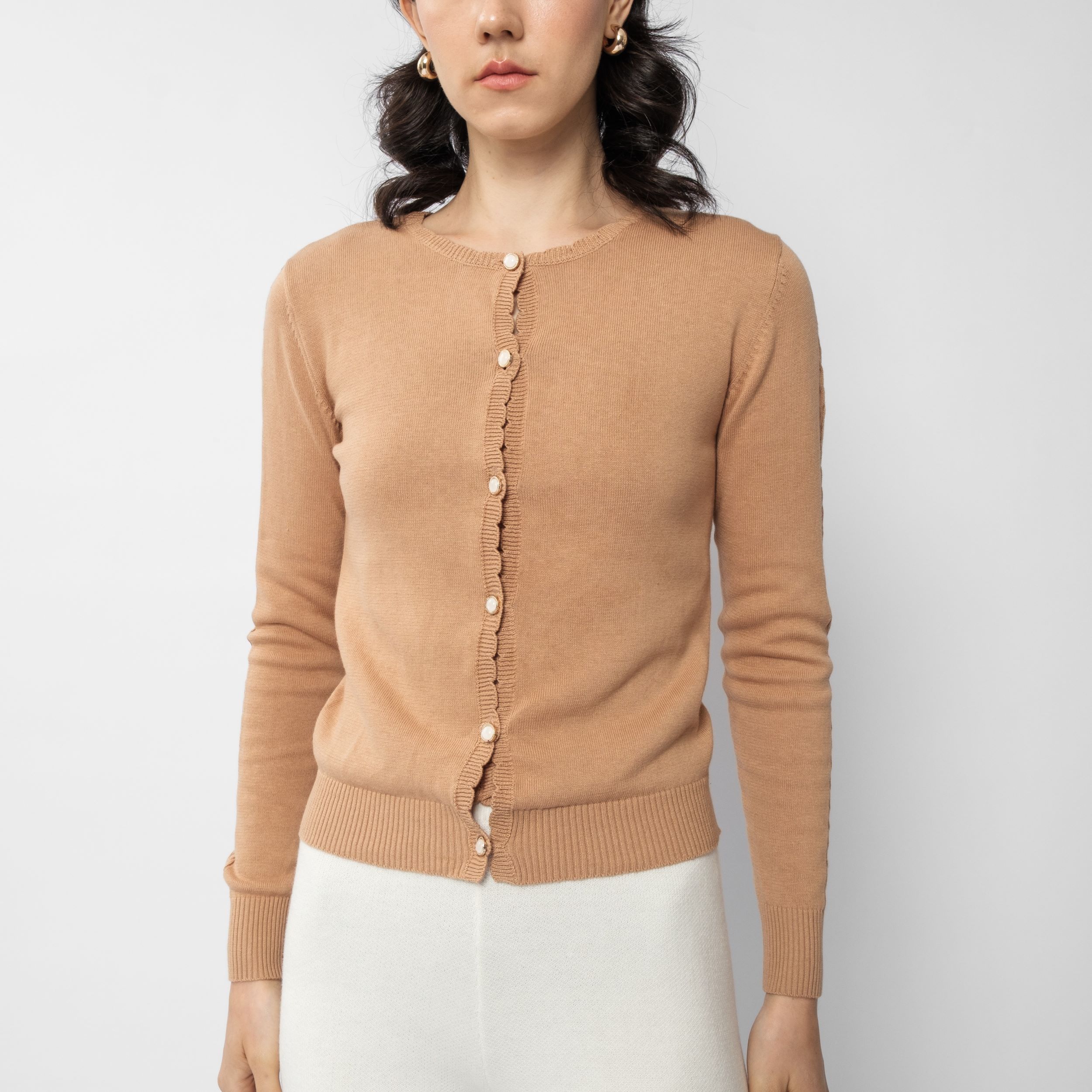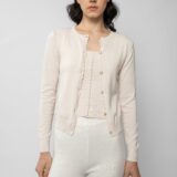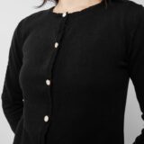 Long-sleeved knit cardigan with pretty buttons to enhance the elegance of the piece.