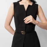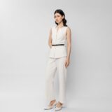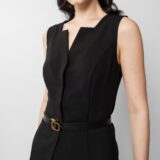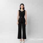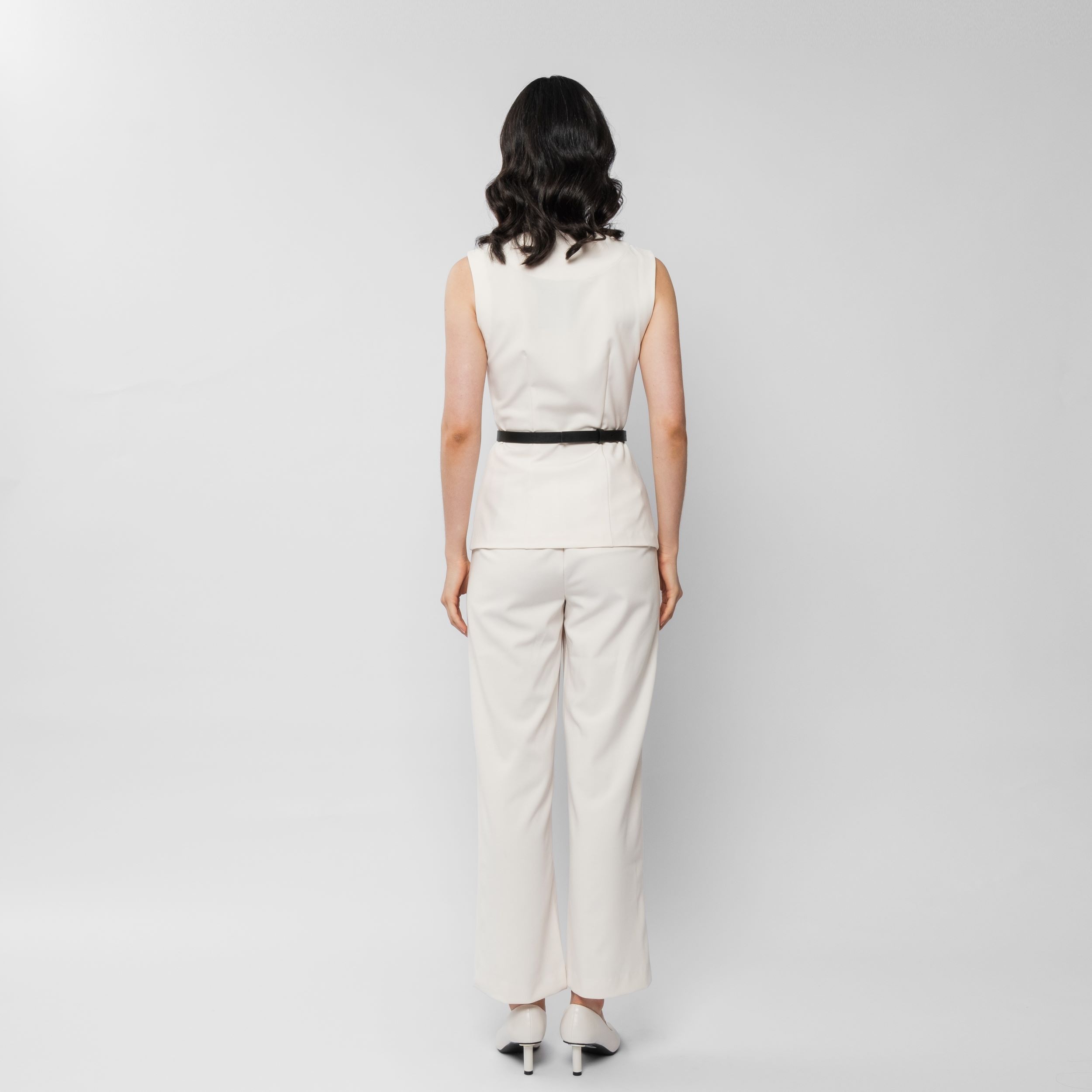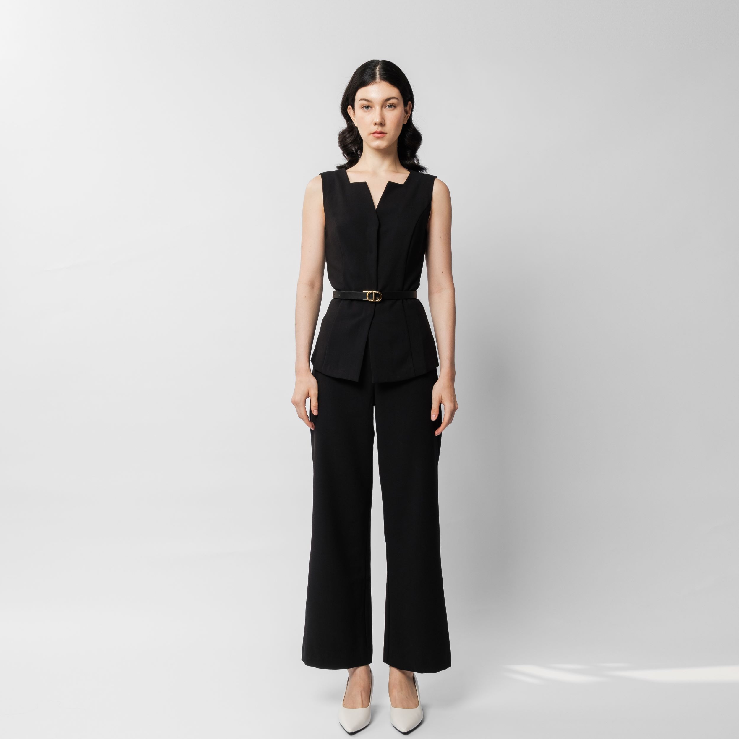 V-neck woven top featuring a stylish model with peplum silhouette. wear it as a set with our coordination Conrad Pants and belt to highlight your waist.