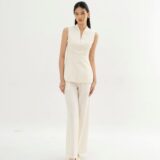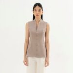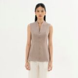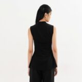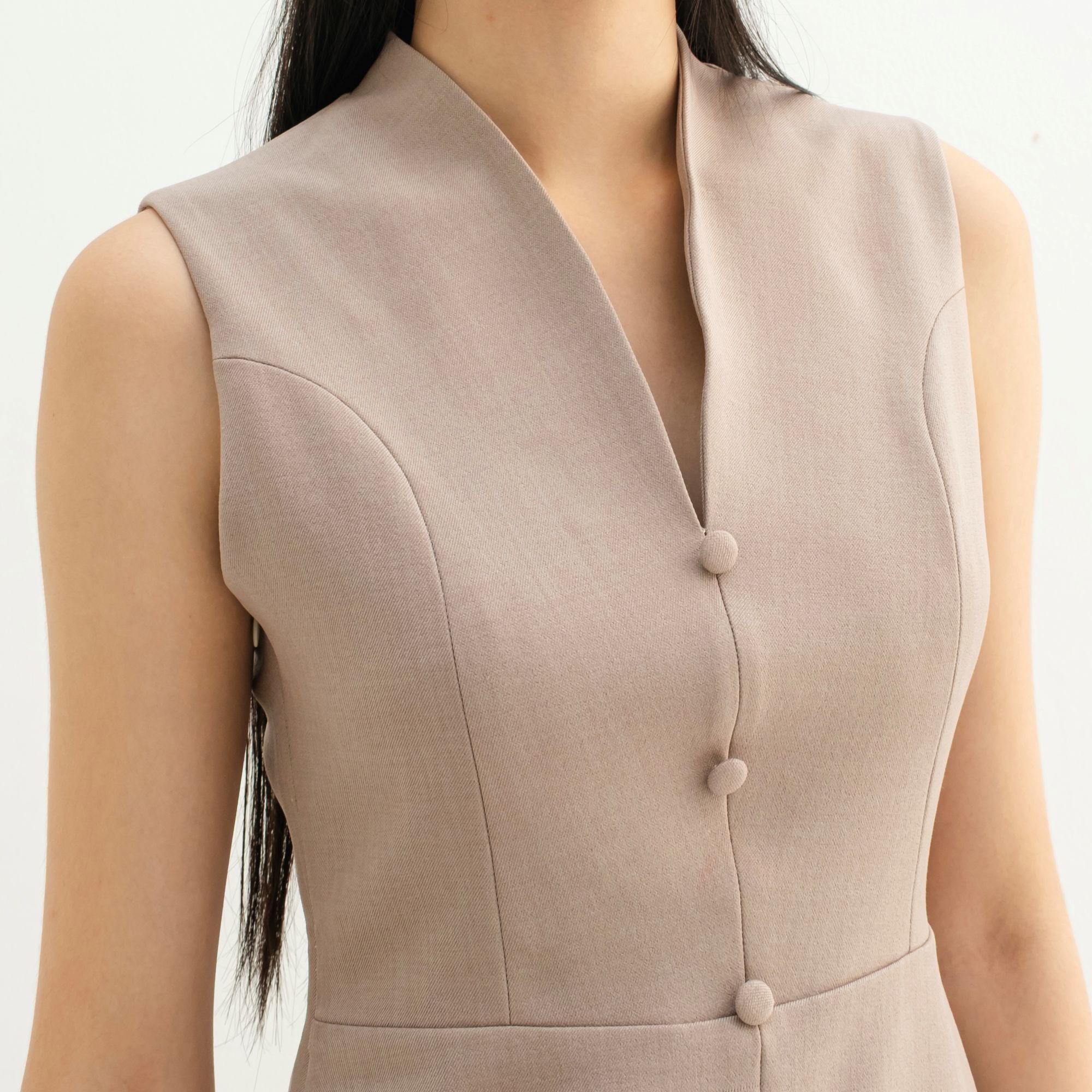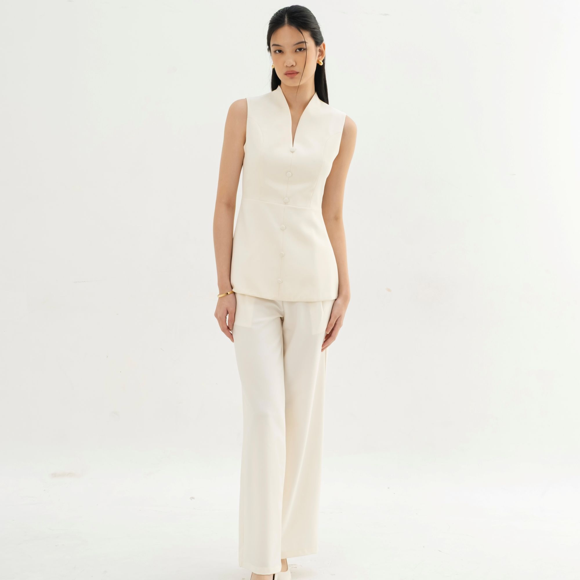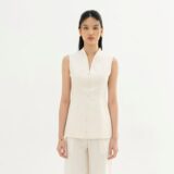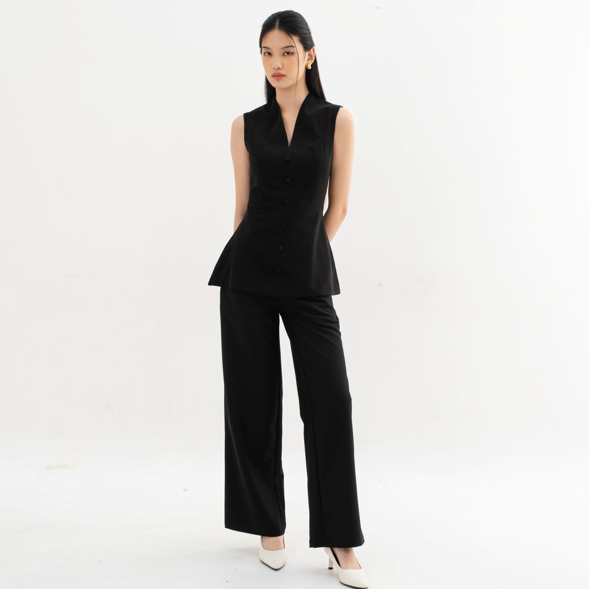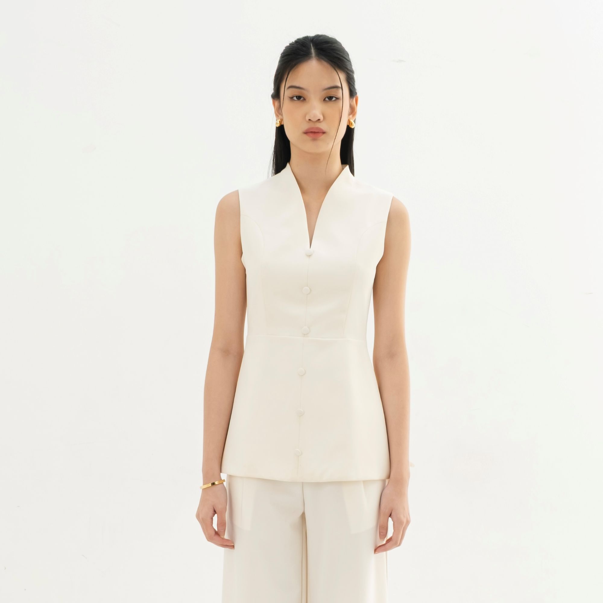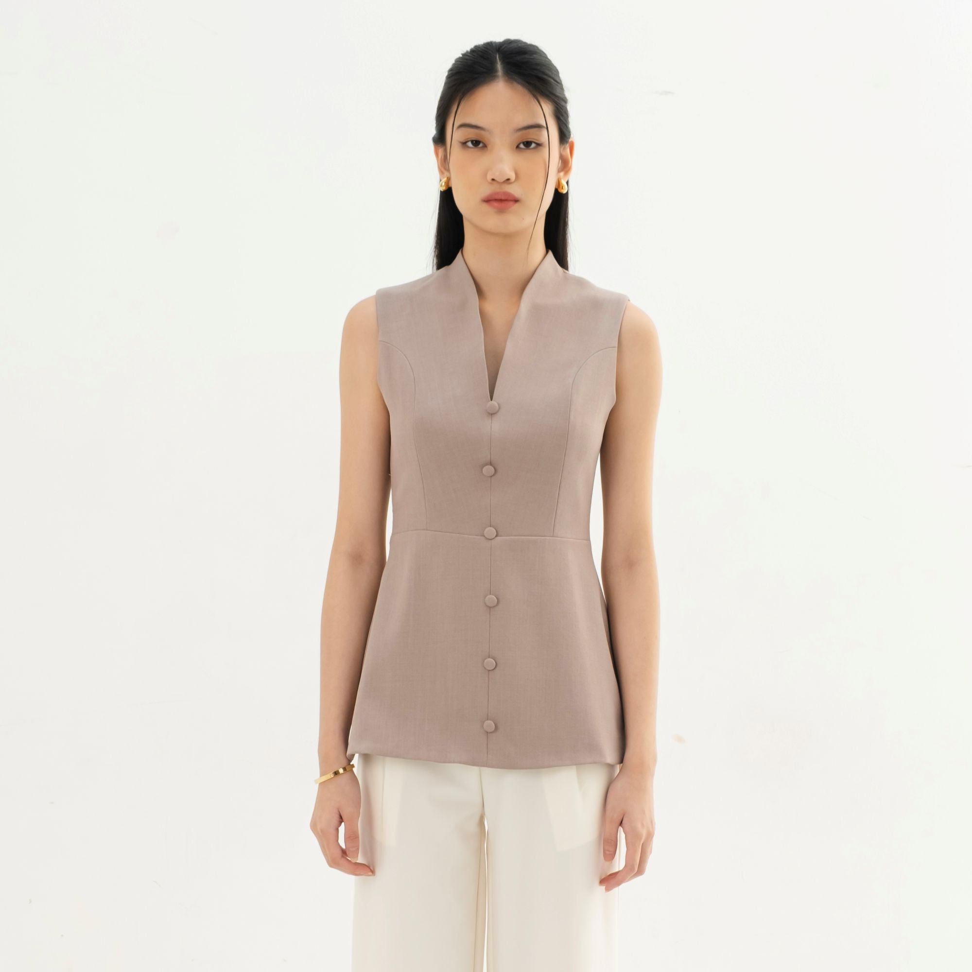 Minimal but not boring, this sleeveless top is designed with a sculpted neckline, full button front, and a soft peplum flare. Effortless to style and essential to any wardrobe, no matter the trend