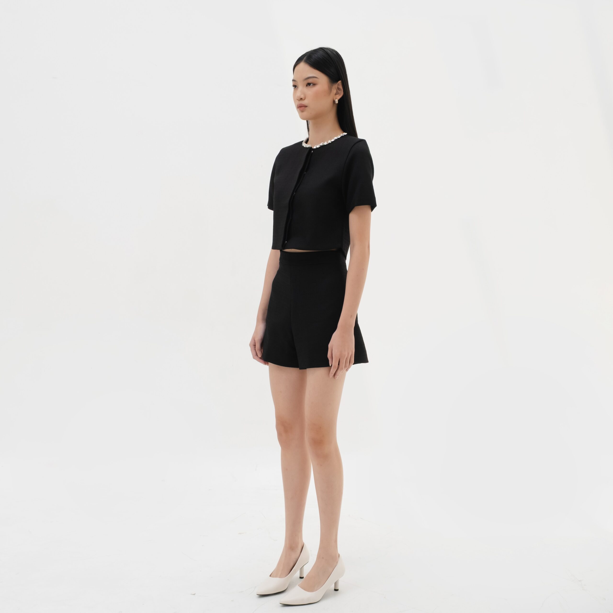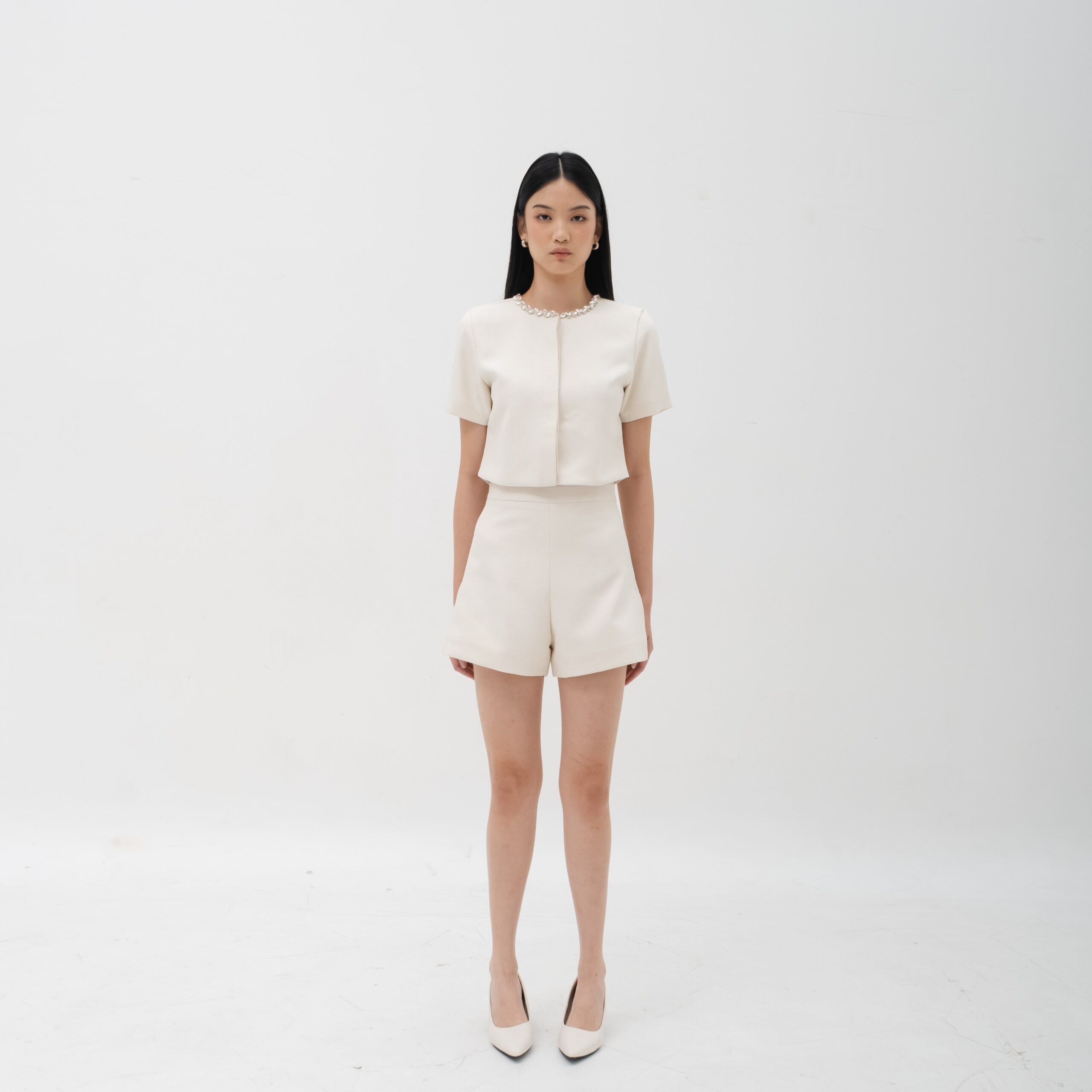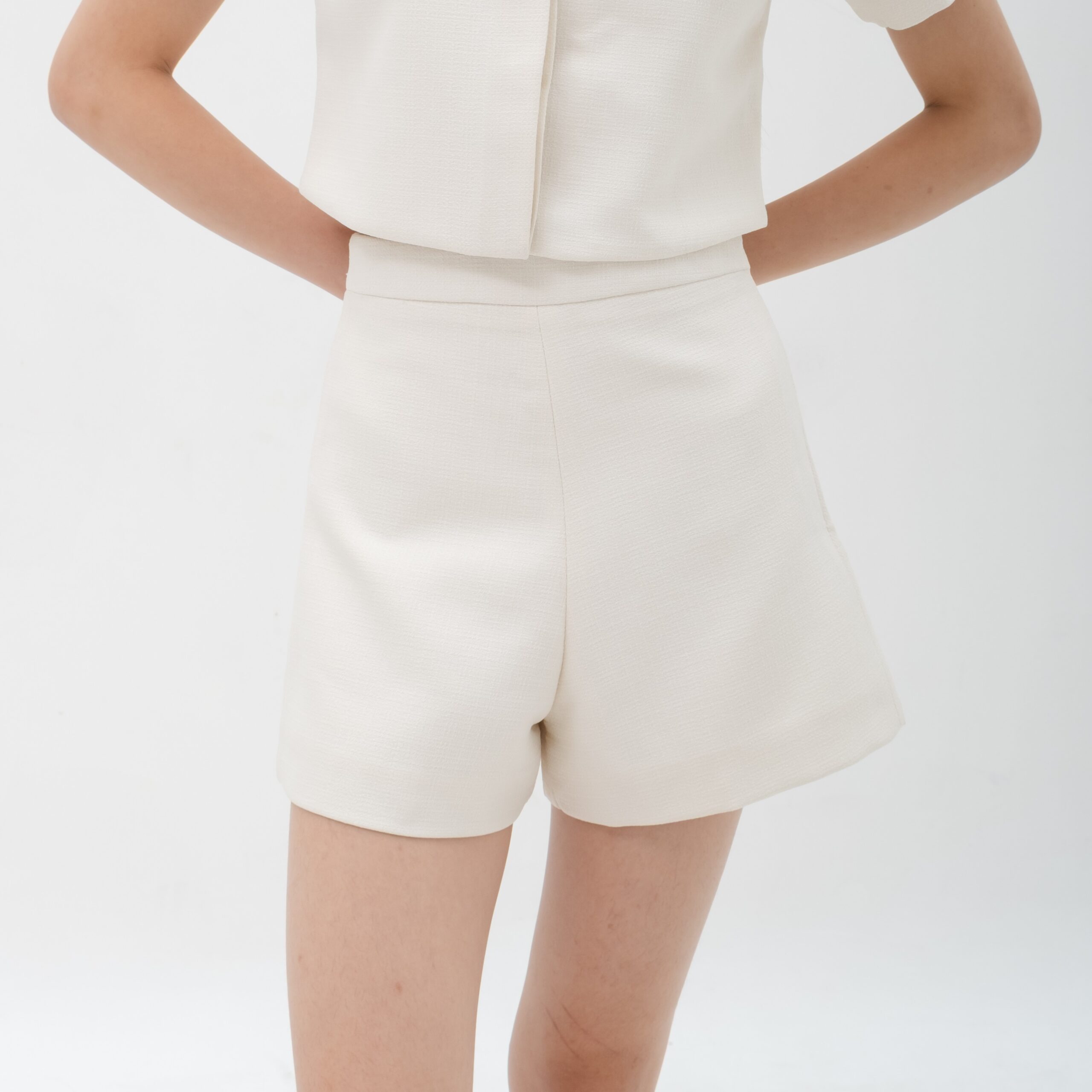 Tailored high-waist shorts with clean seam lines for a polished finish. The A-line cut gives them a timeless, relaxed fit.