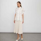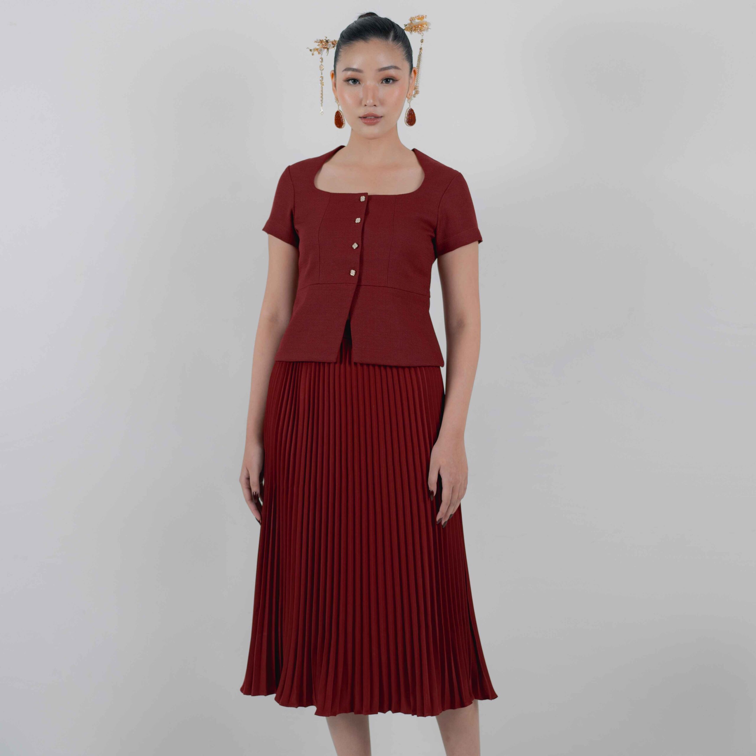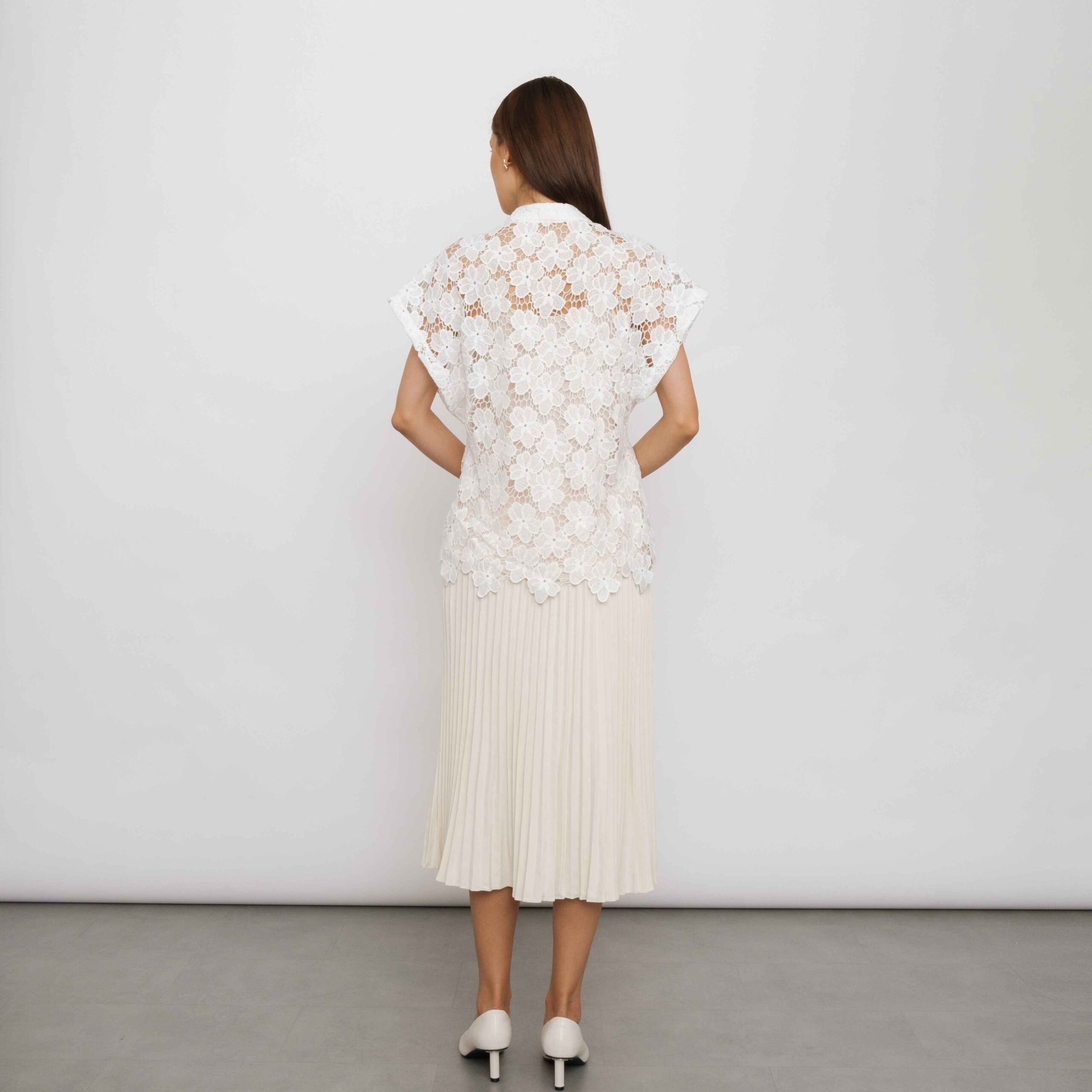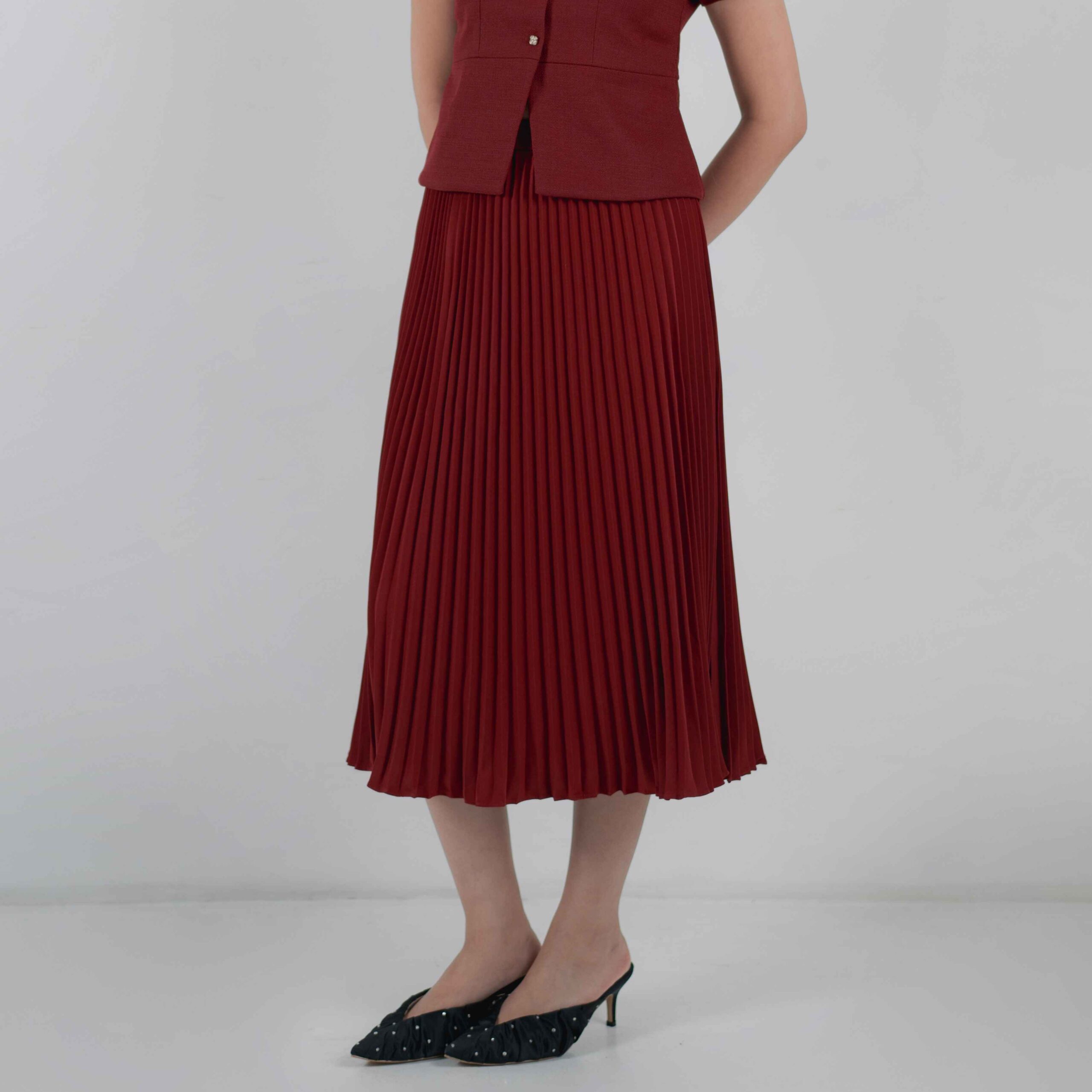 Exquisitely designed with delicate pleats, this skirt embodies a refined elegance. Its timeless silhouette strikes the perfect balance between feminine charm and sophisticated luxury, making it a statement of understated opulence.