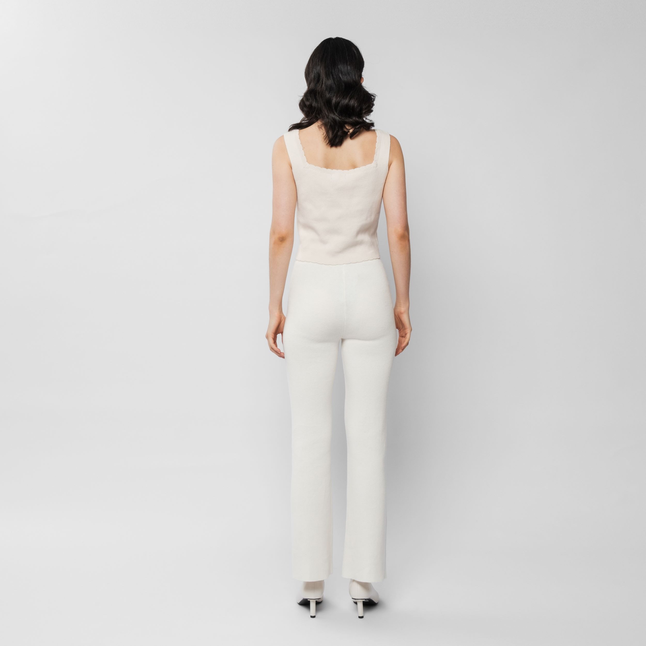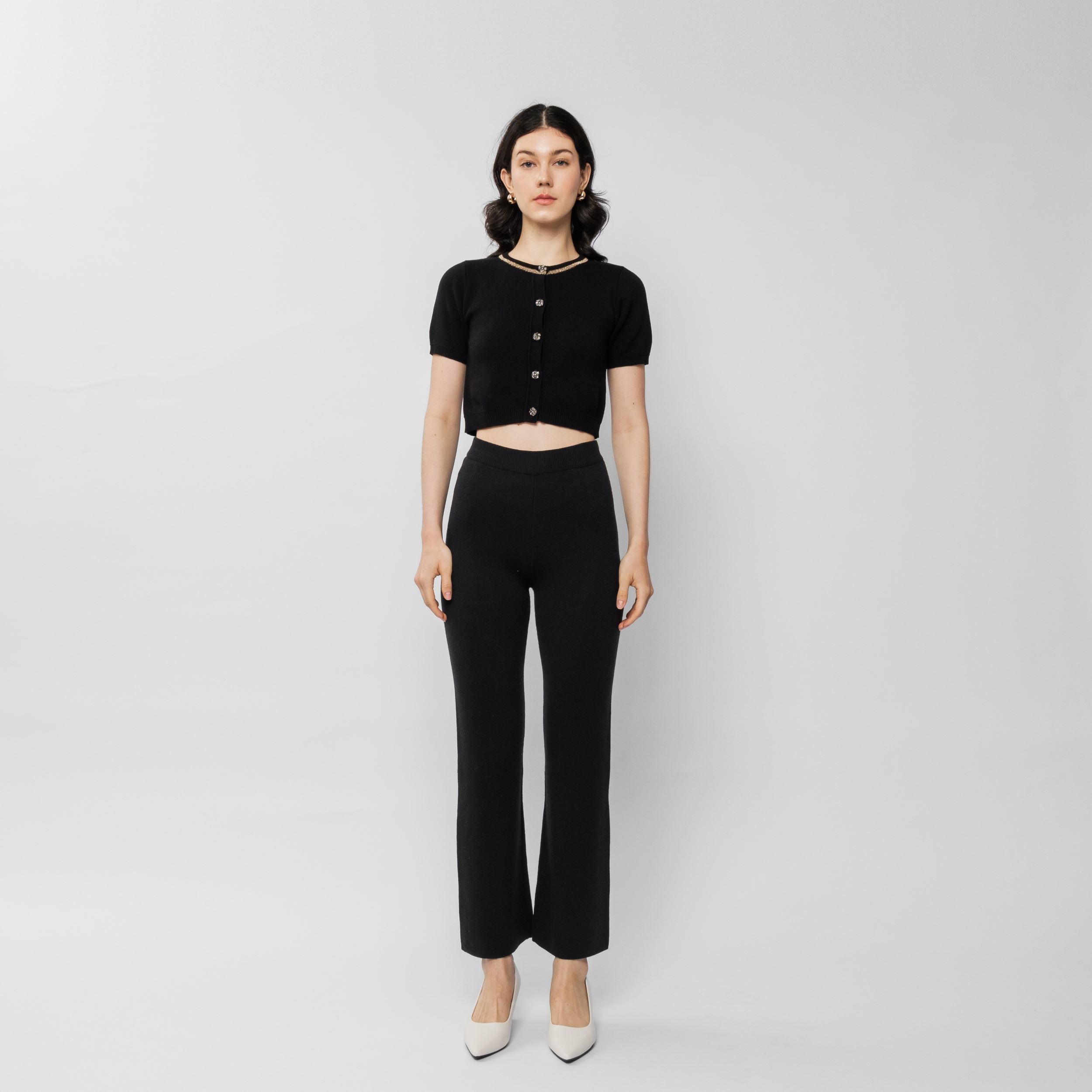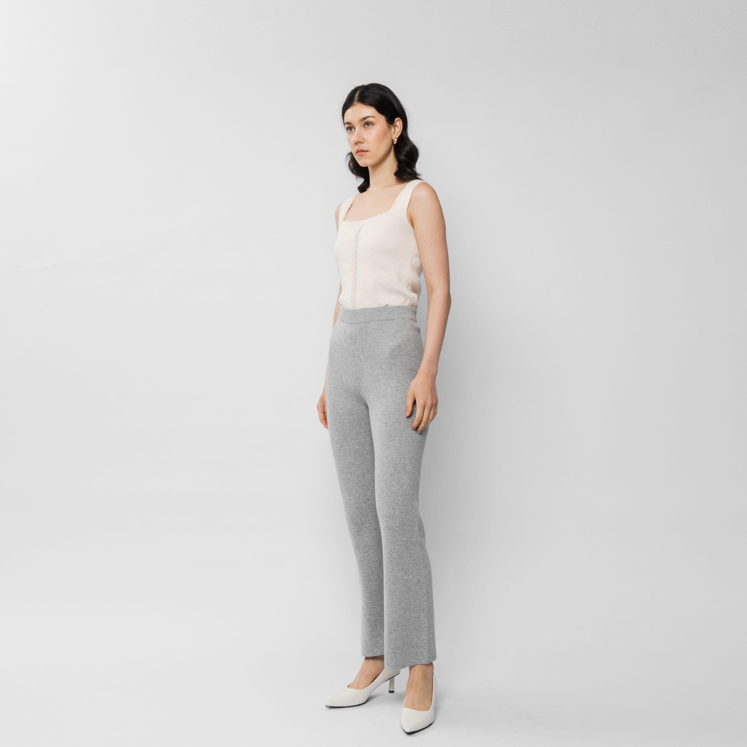 Wrapped in stretchy knitted material, ribbed for the possible fit and sit high on the waist before falling to floaty, these are the pants that will help you go throught your morning coffee run to airport check in style.